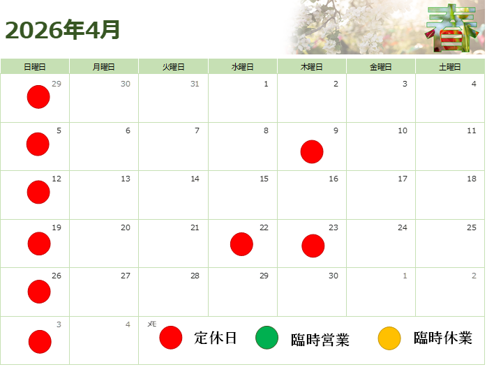 営業時間:9時~21時 定休日:日曜日 隔週木曜日